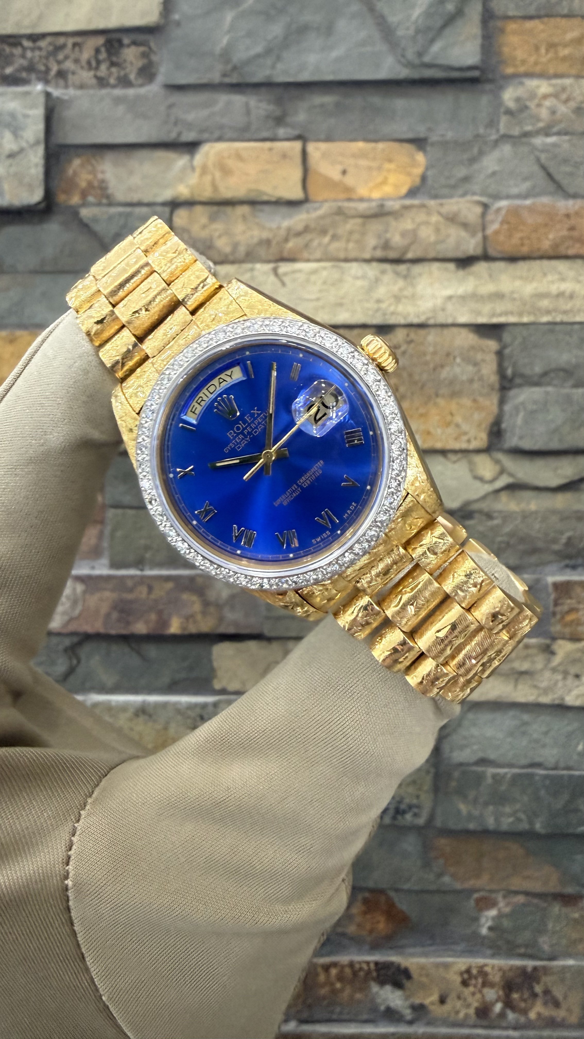 1979 Custom Blue Roman Day-Date 36 REF #18038 with a box. Call or stop by our shop