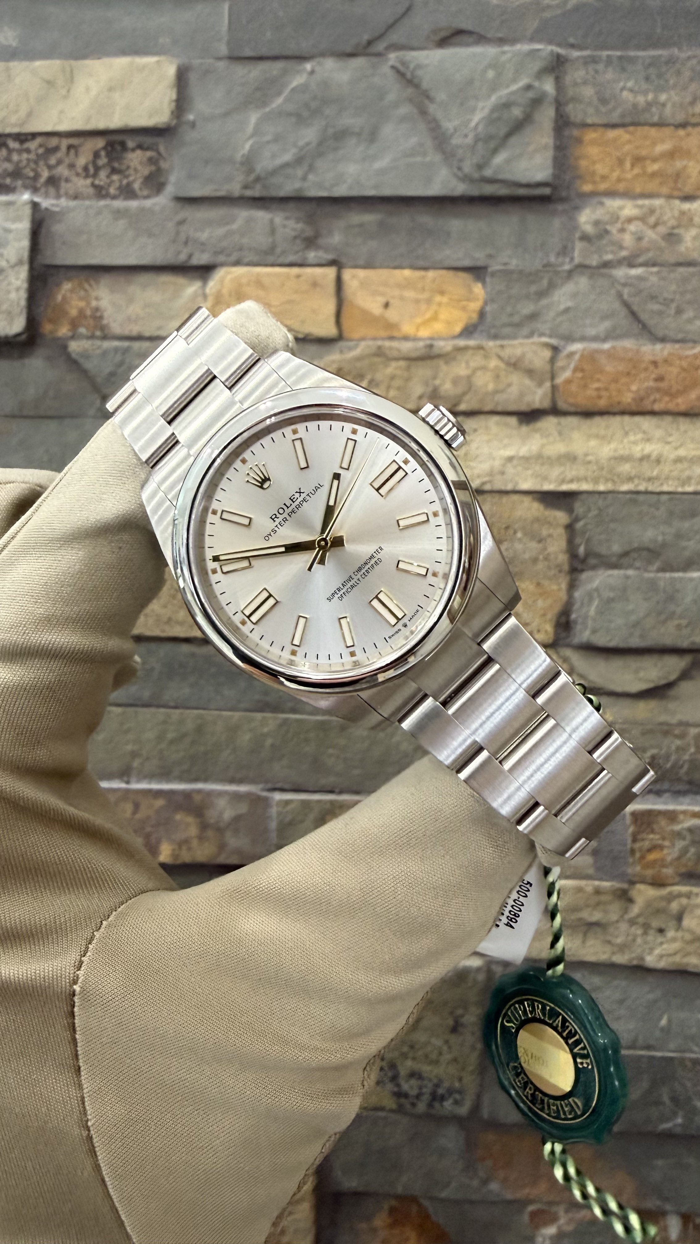 2025 Rolex Silver OP41 REF #134300 with box and papers. Call or stop by our shop